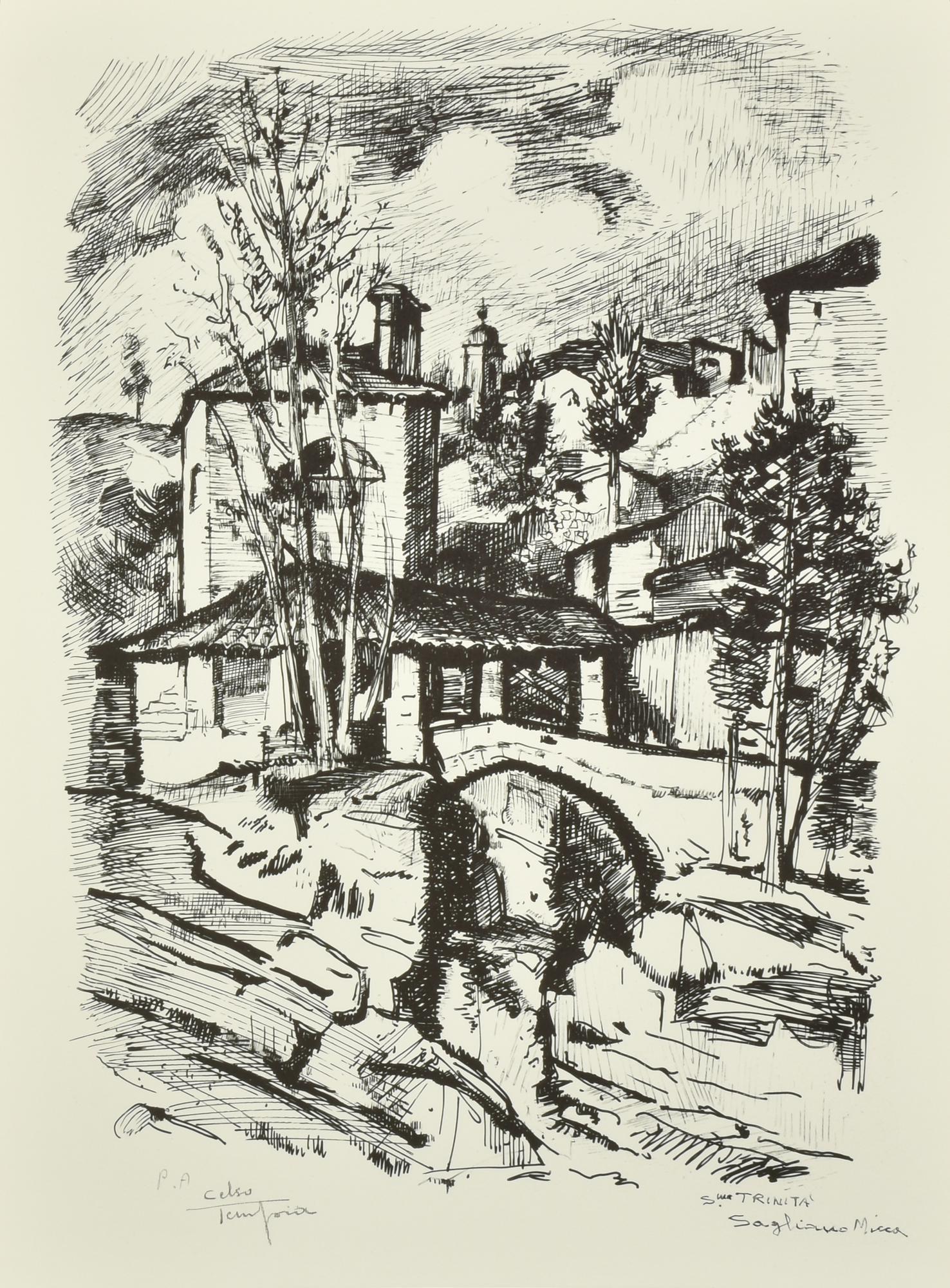Celso Tempia PAESAGGIO BIELLESE litografia su carta, cm 50x35, es p.a. firma