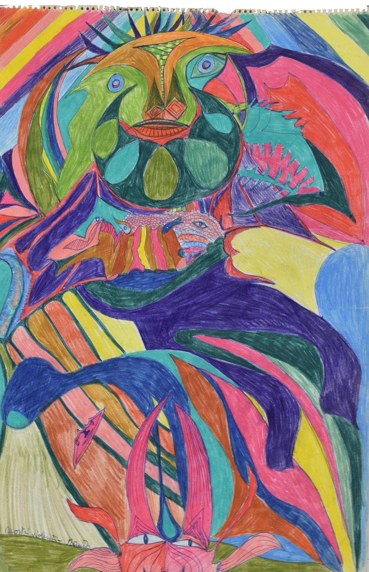 Dando MOSTRI VIOLENTI tecnica mista su carta, cm 50,2x34,7 firma e titolo...