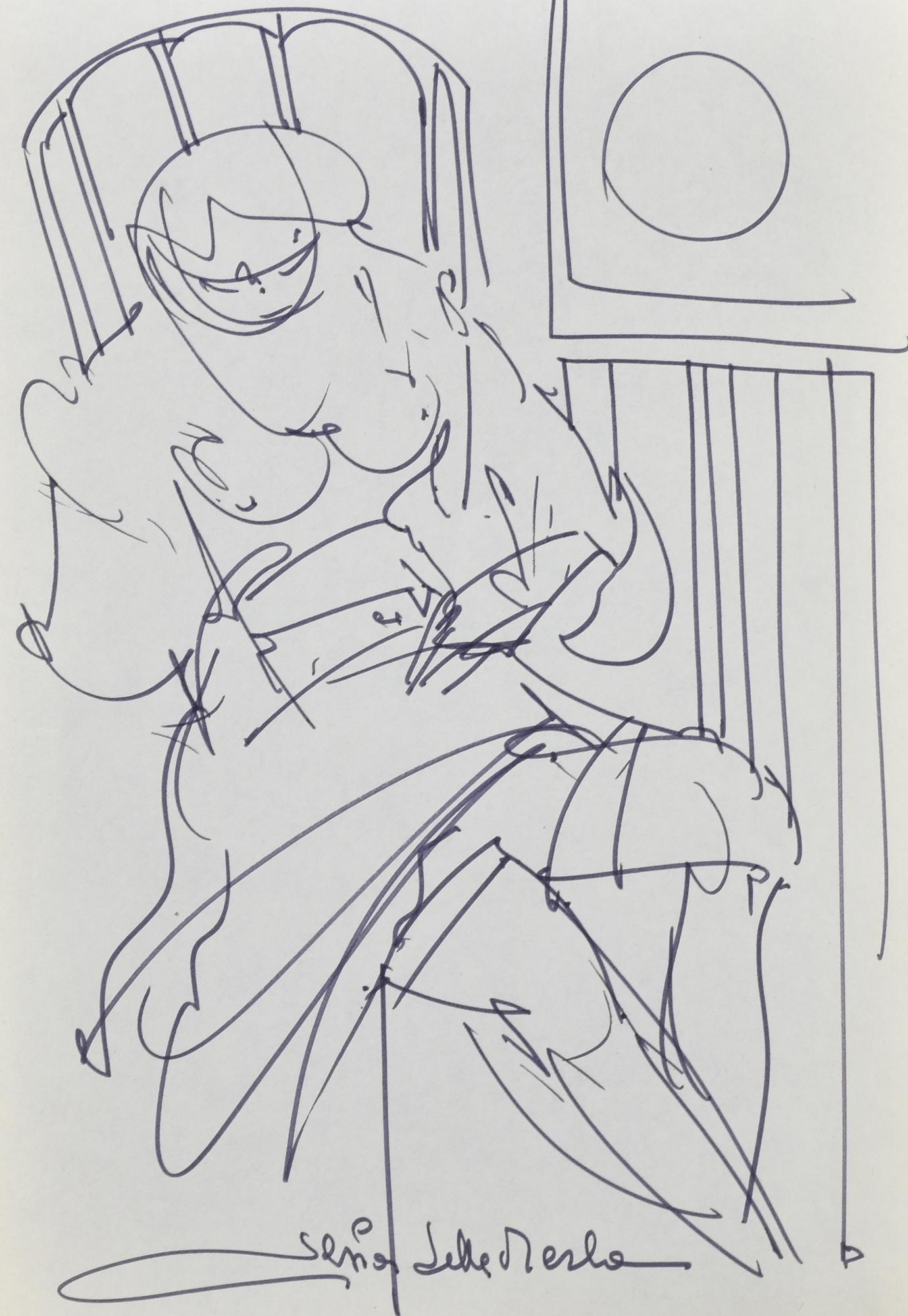 Gianni Sesia della Merla NUDO SEDUTO pennarello su carta, cm 30x21 firma sul...
