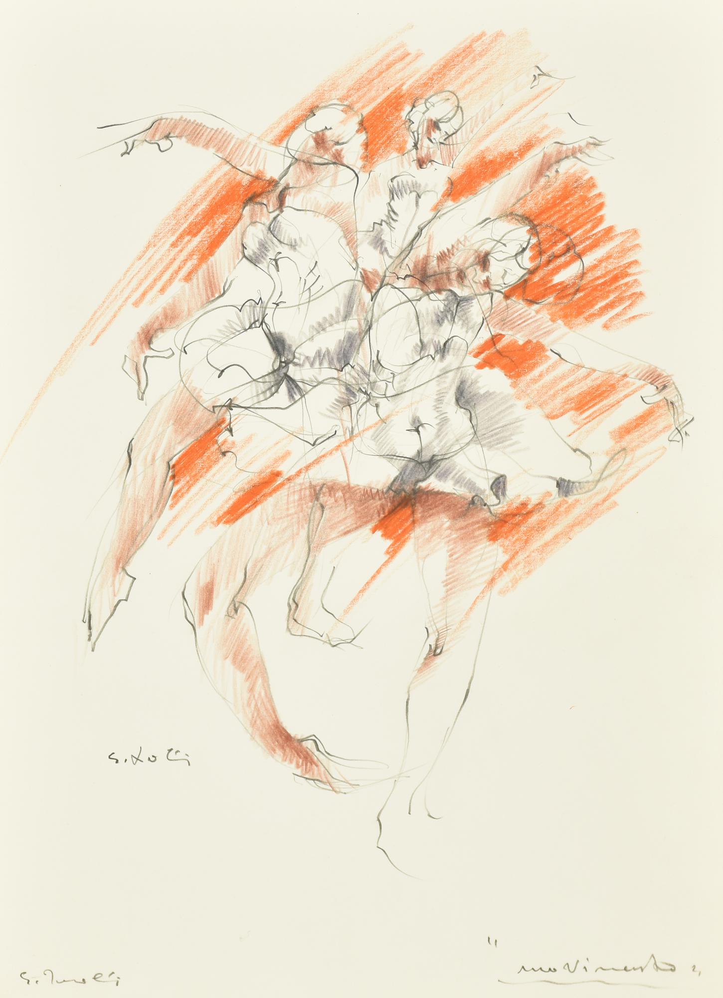 Giuseppe Perolini MOVIMENTO tecnica mista su carta, cm 35x25 firma e titolo