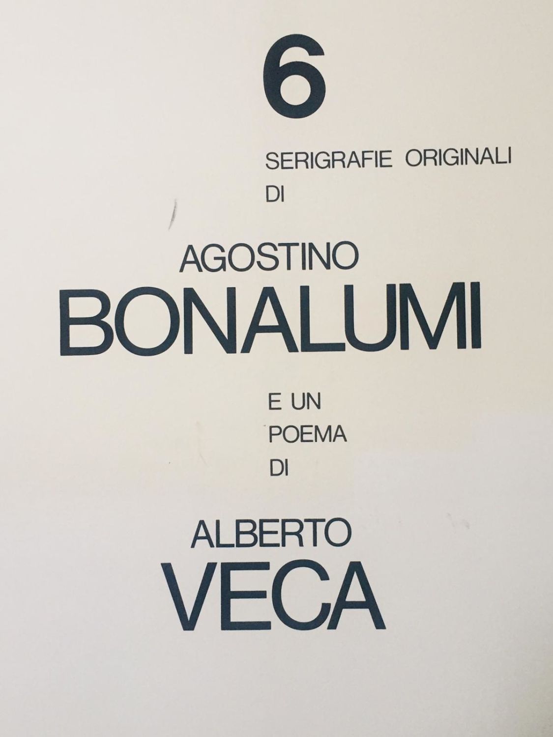 Cartella completa di n. 6 serigrafie su carta Fabriano con un poema di Alberto Veca, Edizione centro Lombardo Arte, Milano, cm 80×68 Firmate e numerate in basso a destra