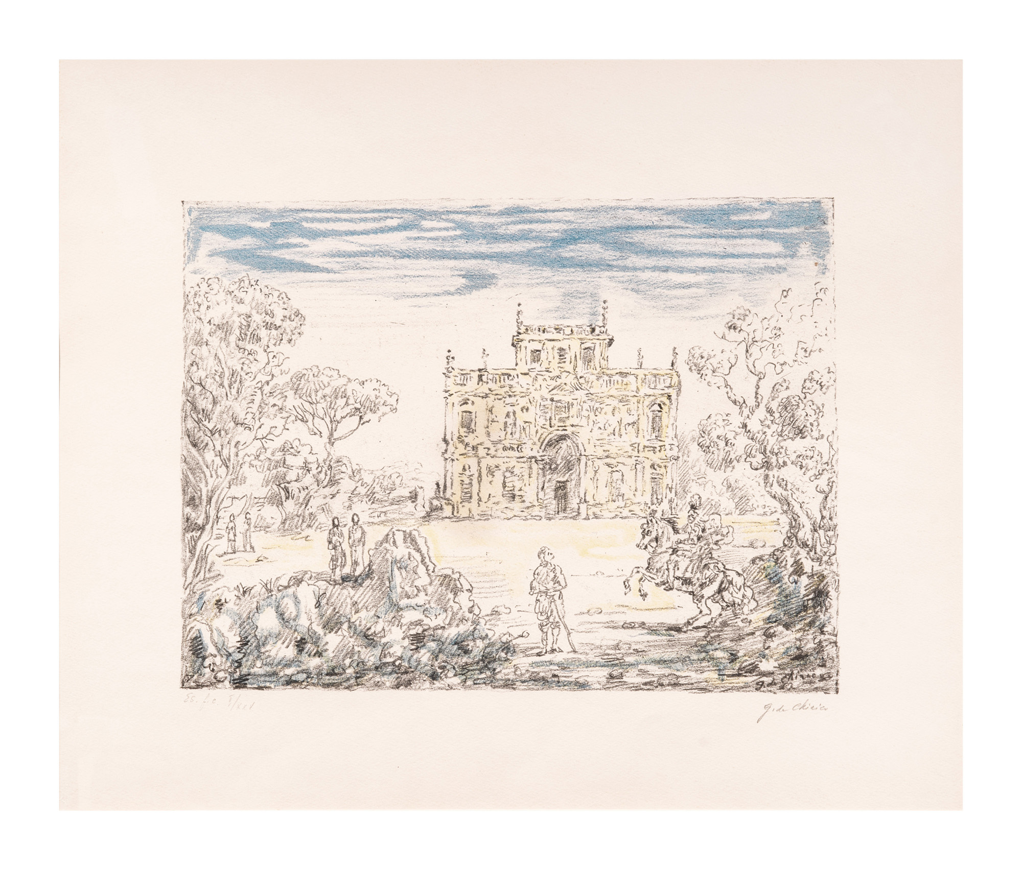 L'opera fa parte della serie di sei litografie intitolata "Cavalli e ville" edita a Roma nel 1954 da Carlo Bestetti.