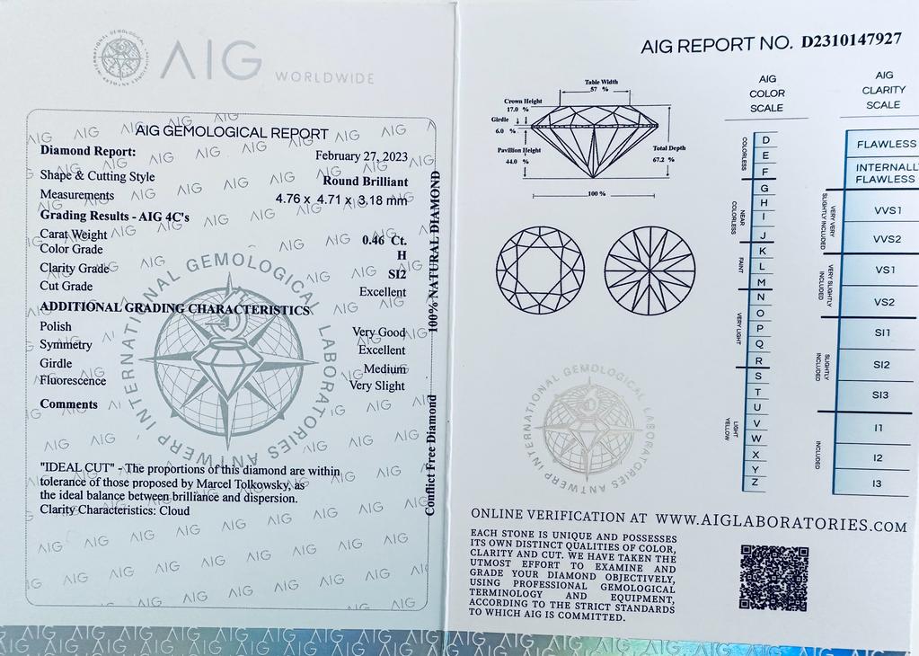 DIAMANTE 0,46 CT H - SI2 - TAGLIO BRILLANTE - CERTIFICATO AIG + INCISO AL LASER - C30220-20