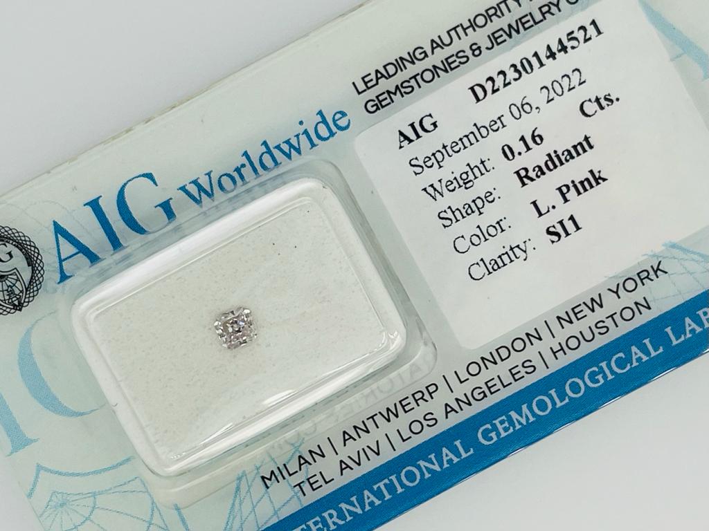 DIAMANTE 0,16 CT ROSA CHIARO PUREZZA SI1 - TAGLIO RADIANTE - CERTIFICATO AIG...
