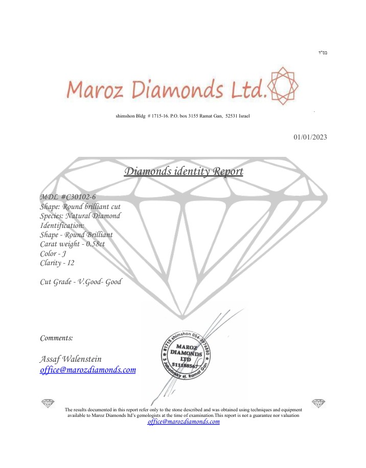 DIAMANTE 0,58 CT I - I2 - TAGLIO BRILLANTE - CERTIFICATO ID - C30102-6