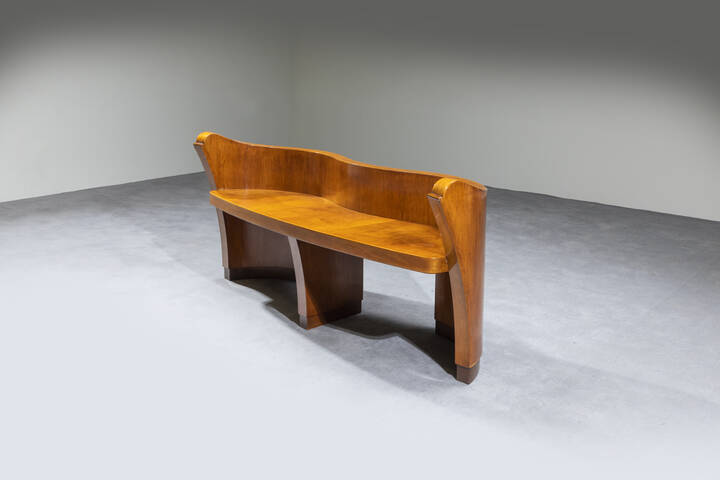 Previous Lot 5 Next Sant’Agostino - Corso Tassoni 56, 10144 Torino Asta 219 Design Sessione unica Thursday 13 April 2023 hours 15:00 (UTC +01:00) PRODUZIONE ITALIANA PRODUZIONE ITALIANAPanca in legno curvo.Anni '40cm 70x146x50