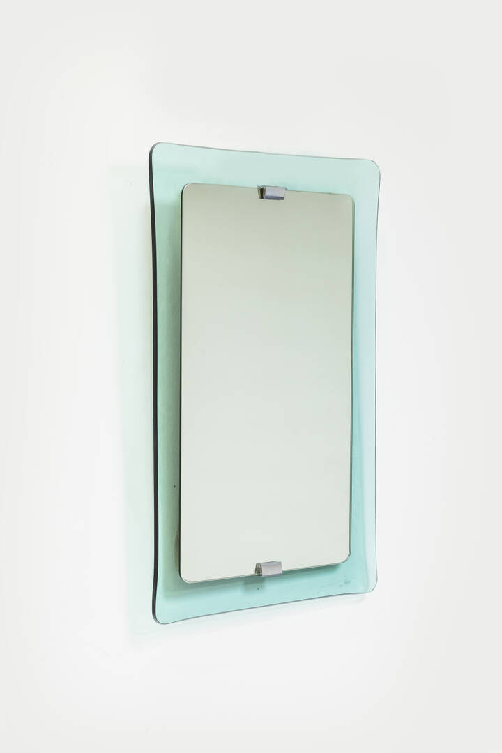 Specchio rettangolare con cornice in vetro colorato curvato.
