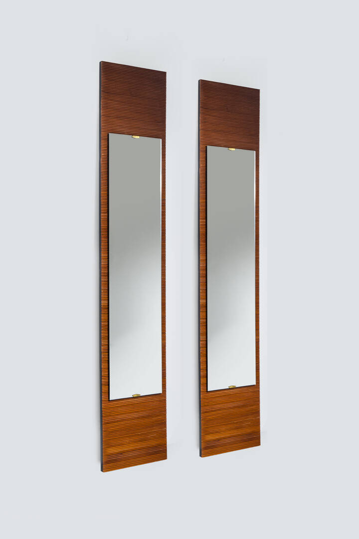 Struttura in legno grissinato, vetro specchiato, particolari in ottone.
