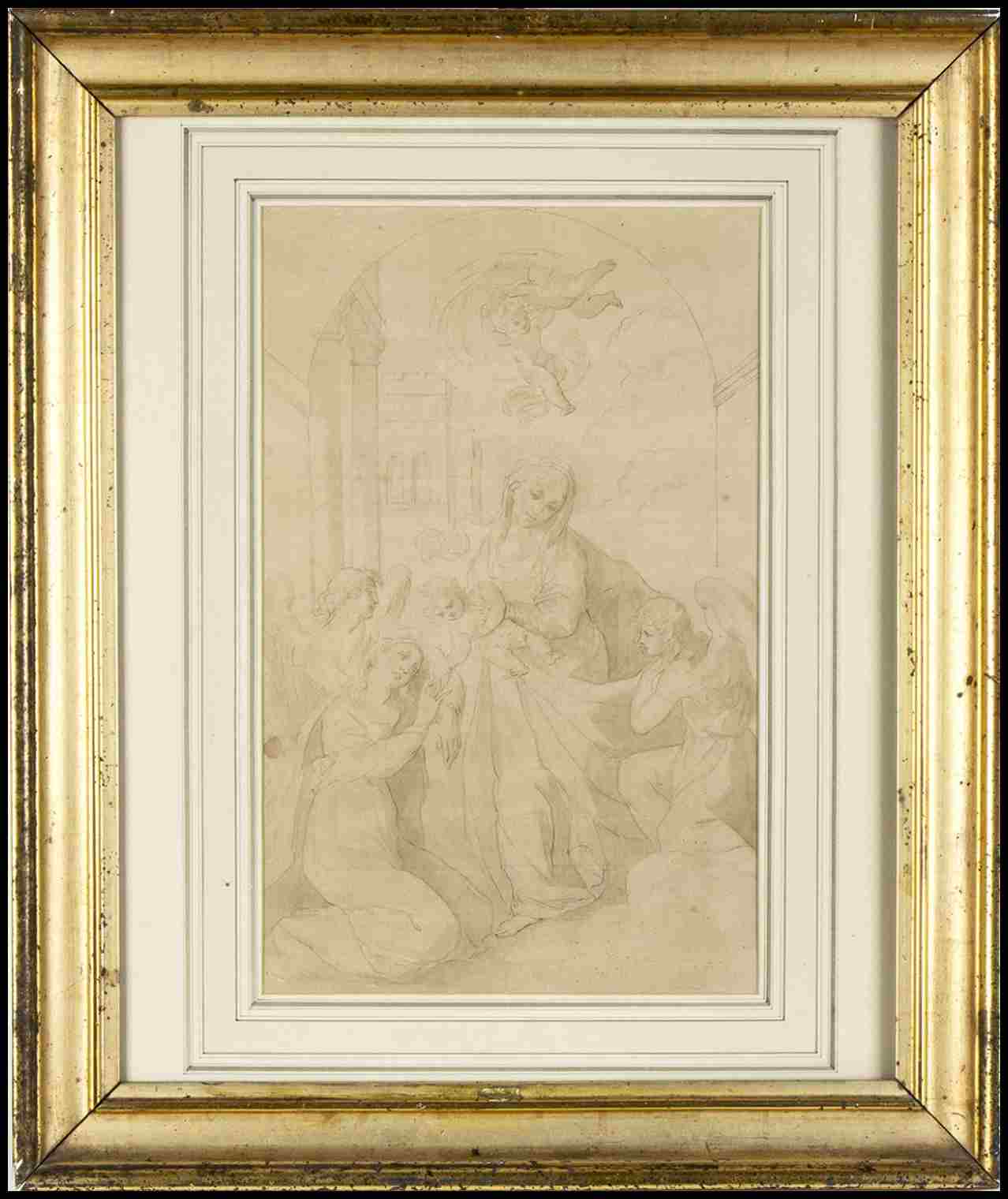 Matita e acquerello su carta bruna vergellata, cm. 42,6x27,3. Con cornice