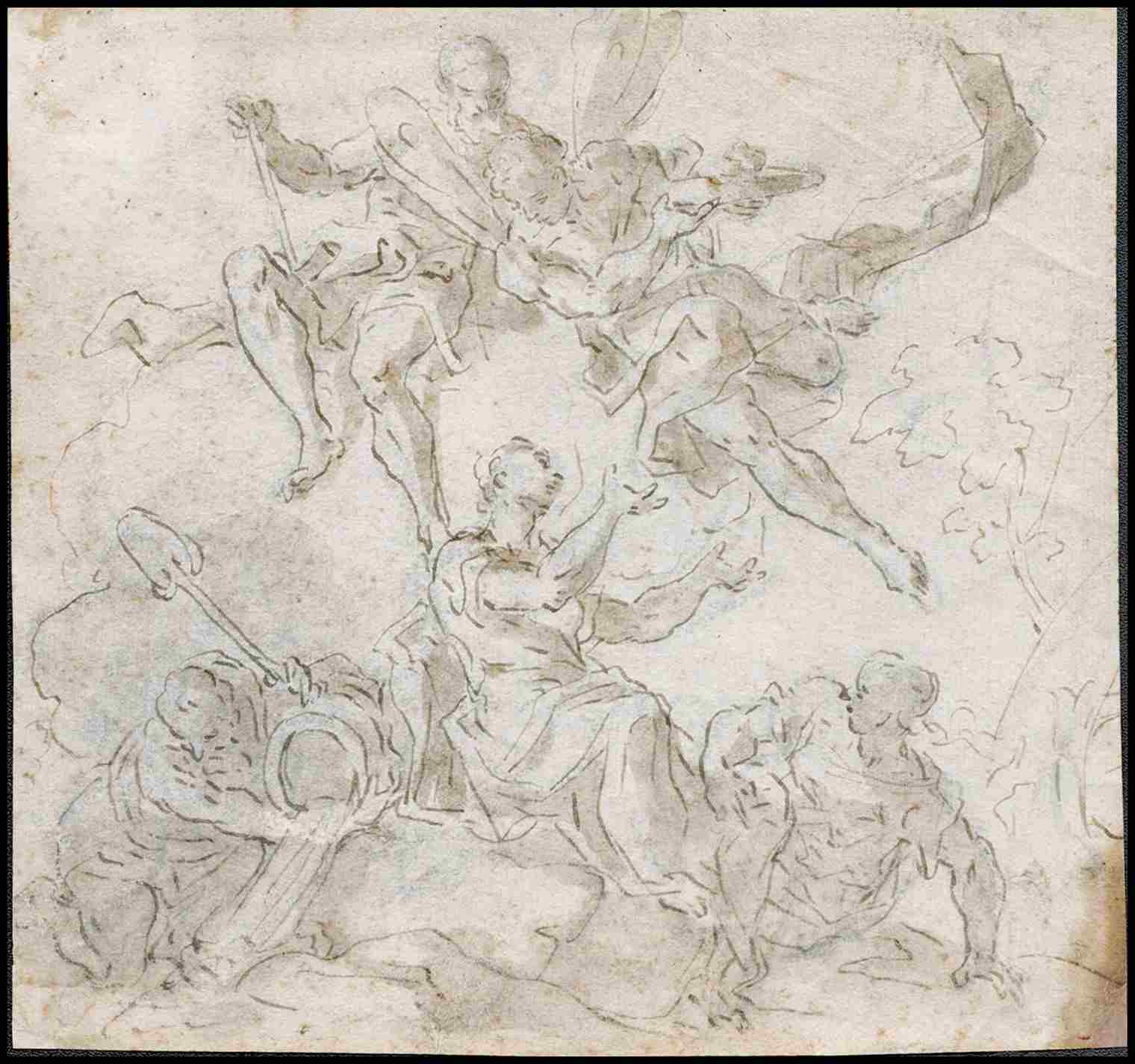 Inchiostro e acquerello su carta bruna vergellata, cm. 20,5x21,5.