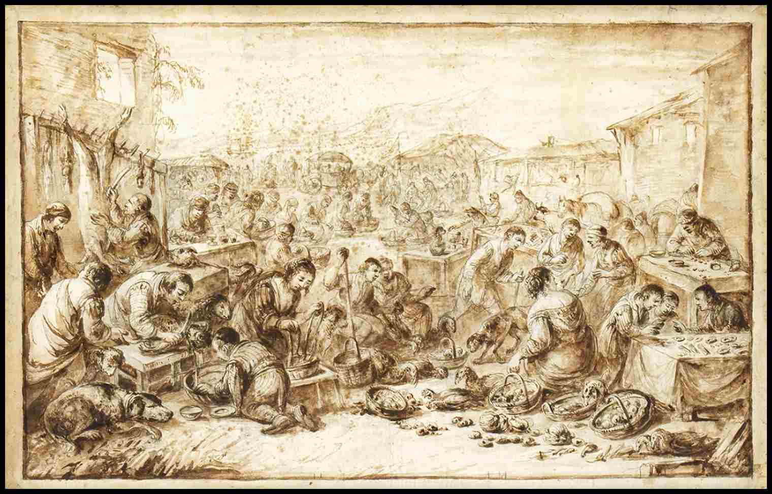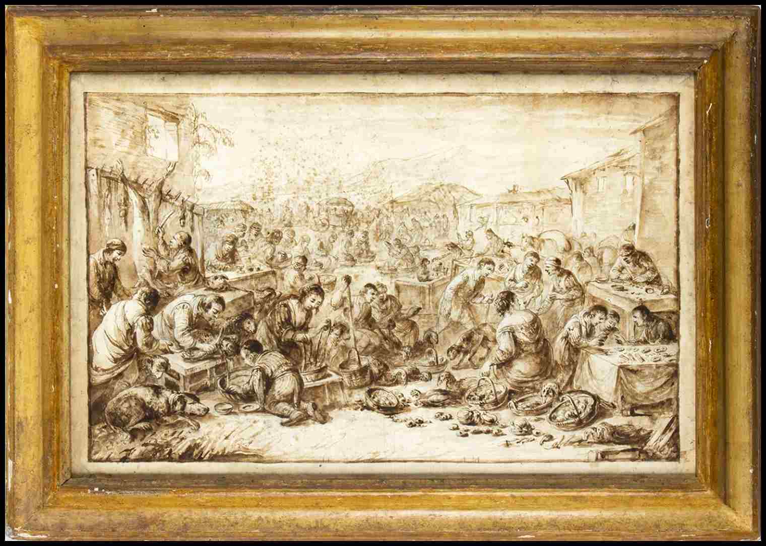 Inchiostro, acquerello e matita su carta bruna vergellata, cm. 53x80. Con cornice