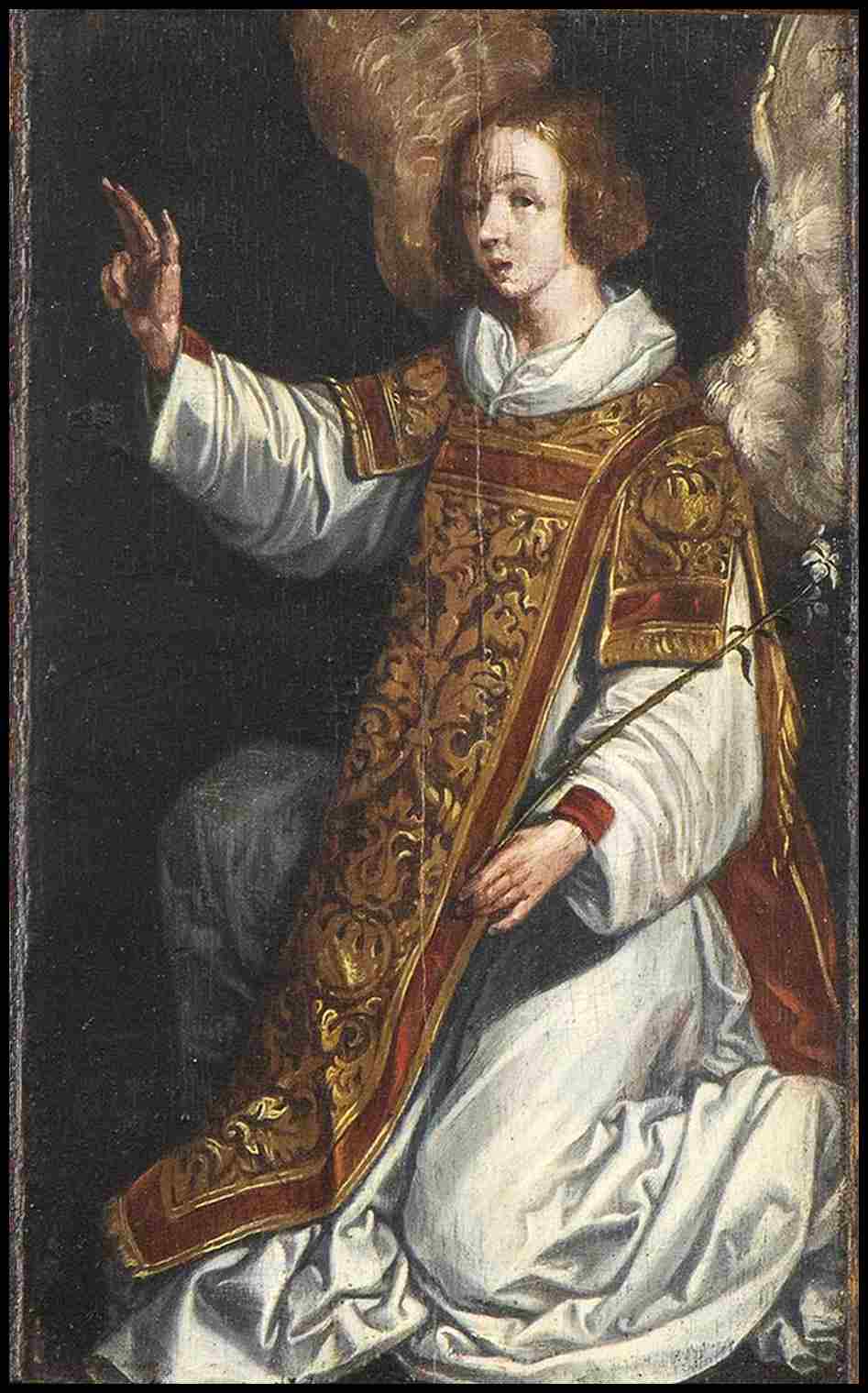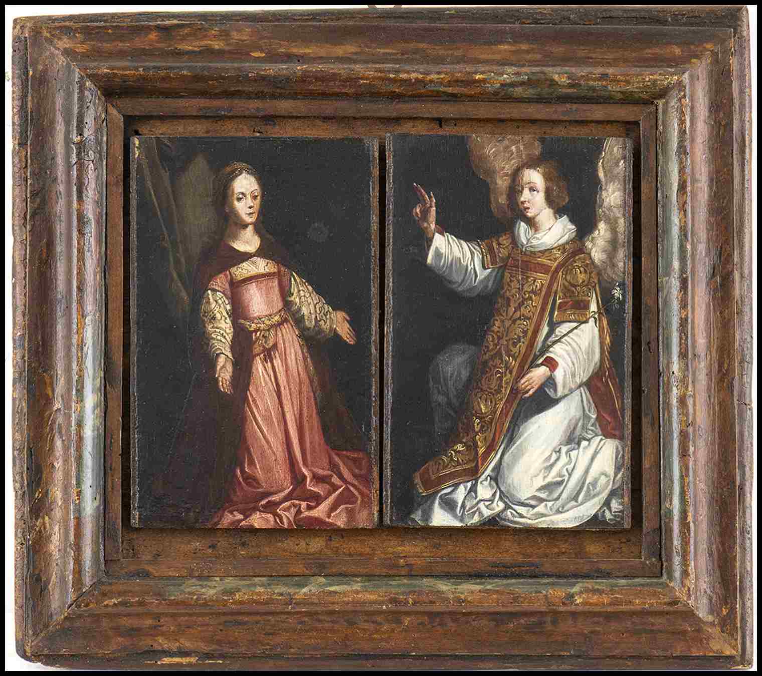 a) Vergine Annunziata; b) Arcangelo Gabriele. Coppia di tavolette su stesso supporto ligneo.