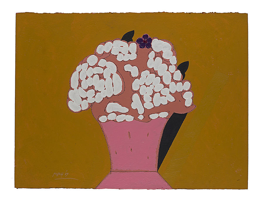 Pozzati Concetto Vo' di Padova 1935 A che punto siamo con i fiori - 1989 Tecnica mista su carta 76 x 56 cm Firma e data in basso a sinistra Autentica dell'artista su foto