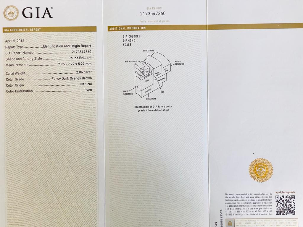 DIAMANTE 2,06 CT FANCY MARRONE ARANCIATO SCURO UNIFORME TAGLIO BRILLANTE - CERTIFICATO GIA - DN21107