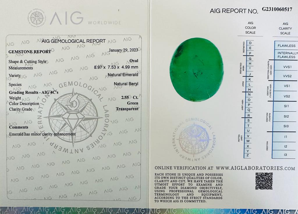 SMERALDO 2,55 CT TAGLIO OVALE - CERTIFICATO AIG - P30101-10