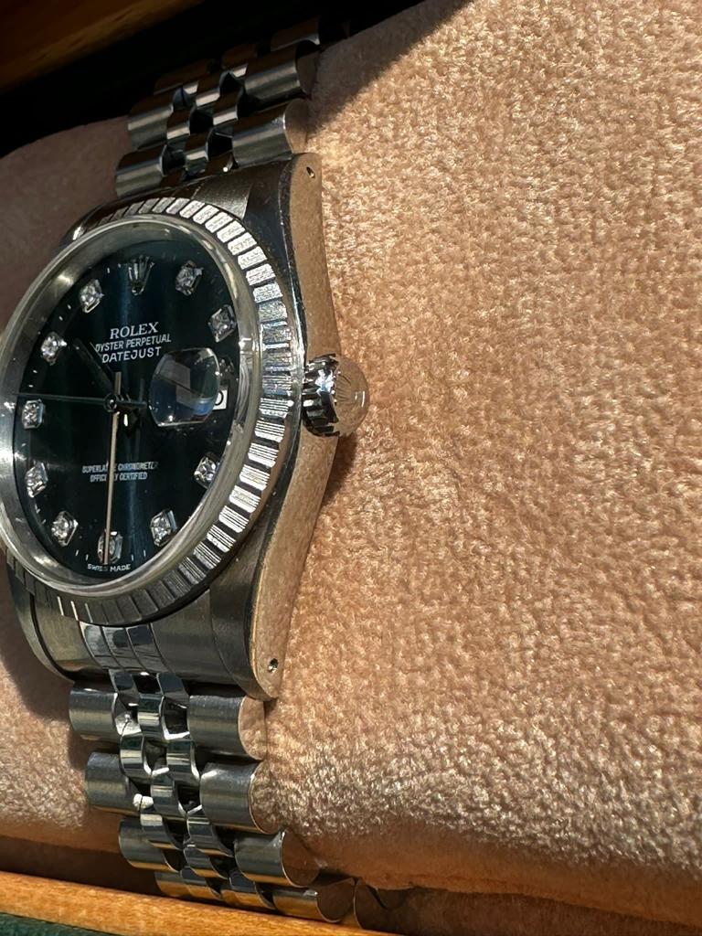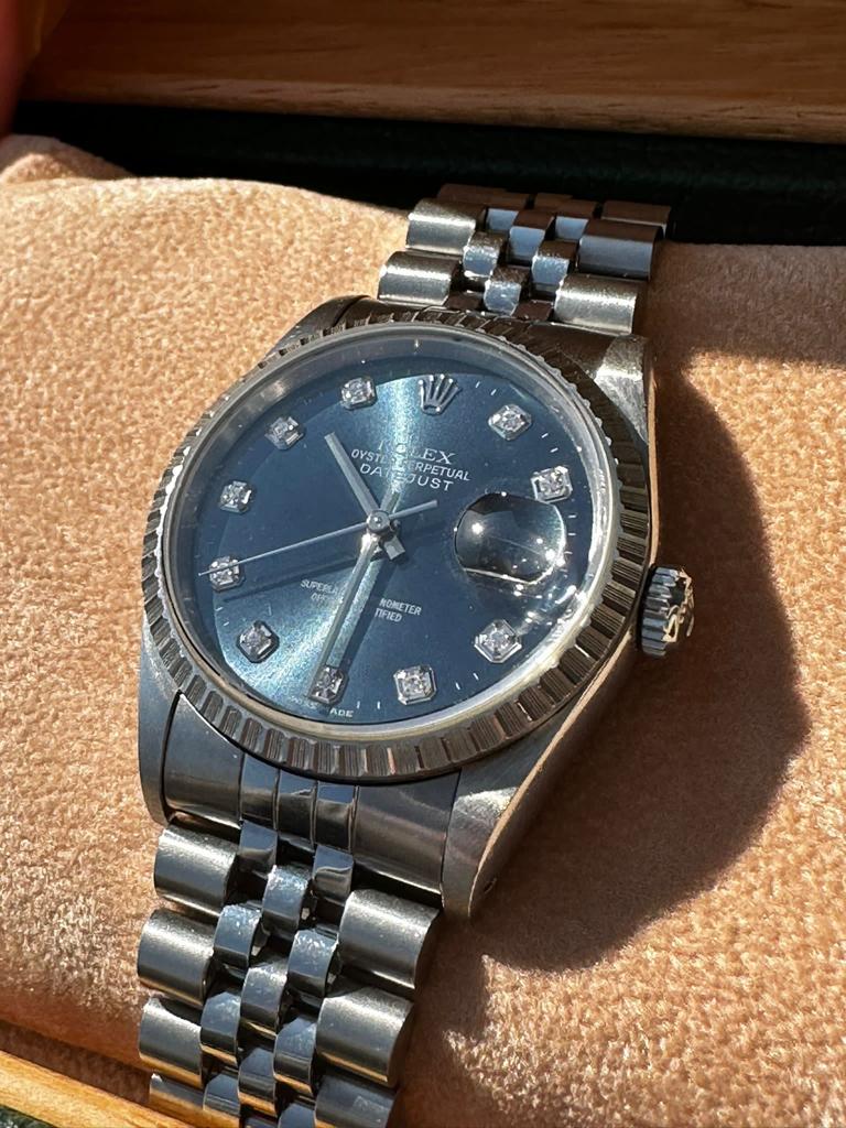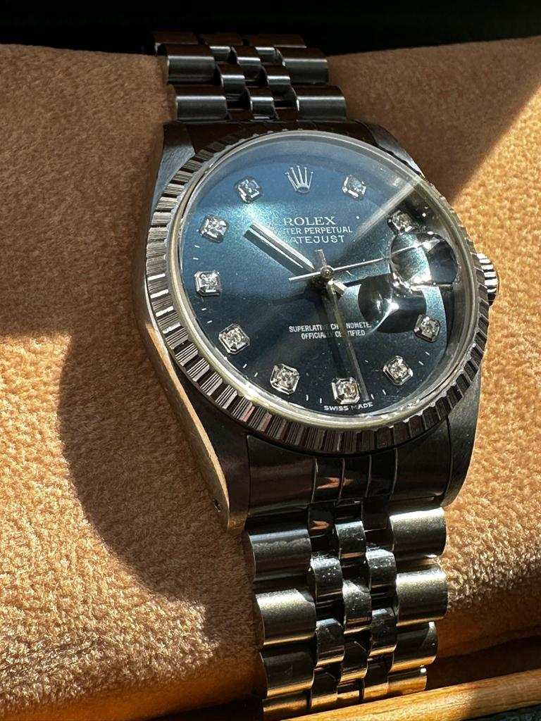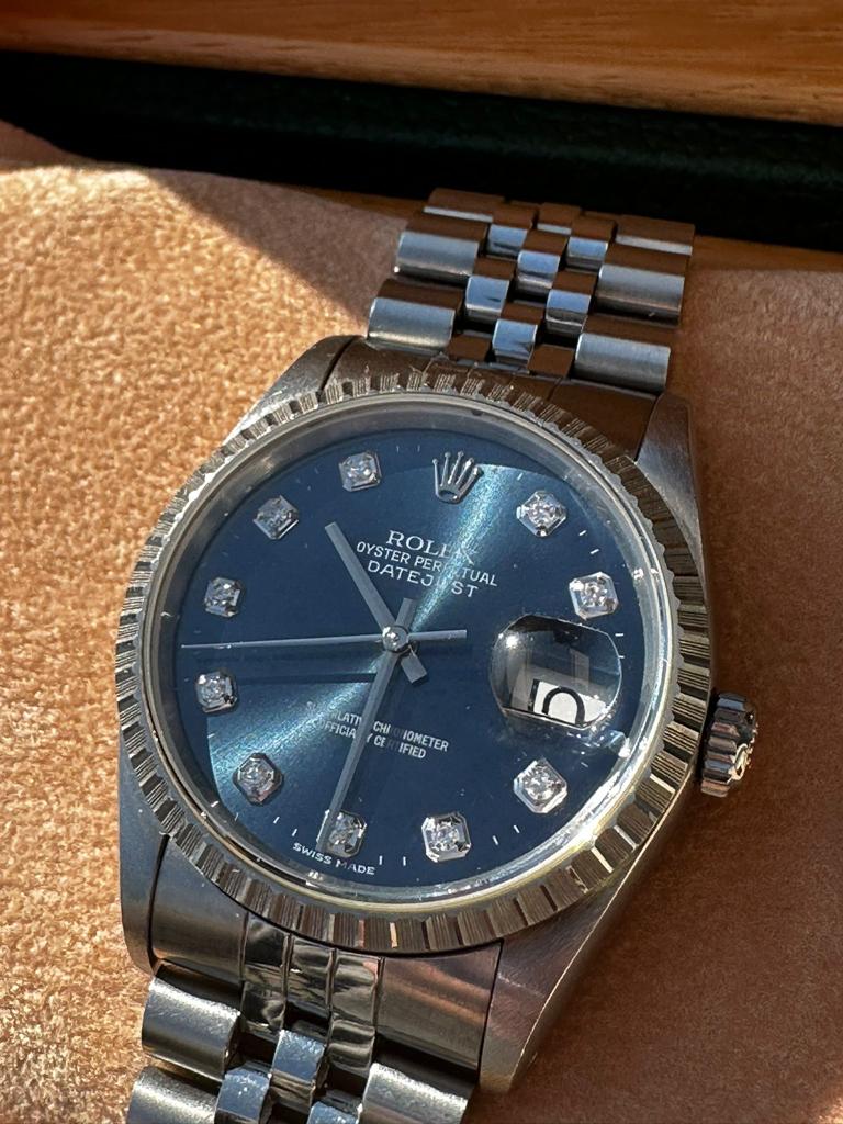 Marca Rolex Modello (Orologio) Datejust 36 Numero di referenza 16220 Carica Automatico Materiale della cassa Acciaio Materiale cinturino Acciaio Anno di produzione 1991 Condizione Ottimo Corredo solo orologio Calibro Carica Automatico Cassa Materiale della cassa Acciaio Diametro 36 mm Impermeabile 5 ATM Materiale lunetta Acciaio Vetro Vetro zaffiro Numeri sul quadrante Senza numeri Cinturino 22 maglie Materiale cinturino Acciaio Colore cinturino Acciaio