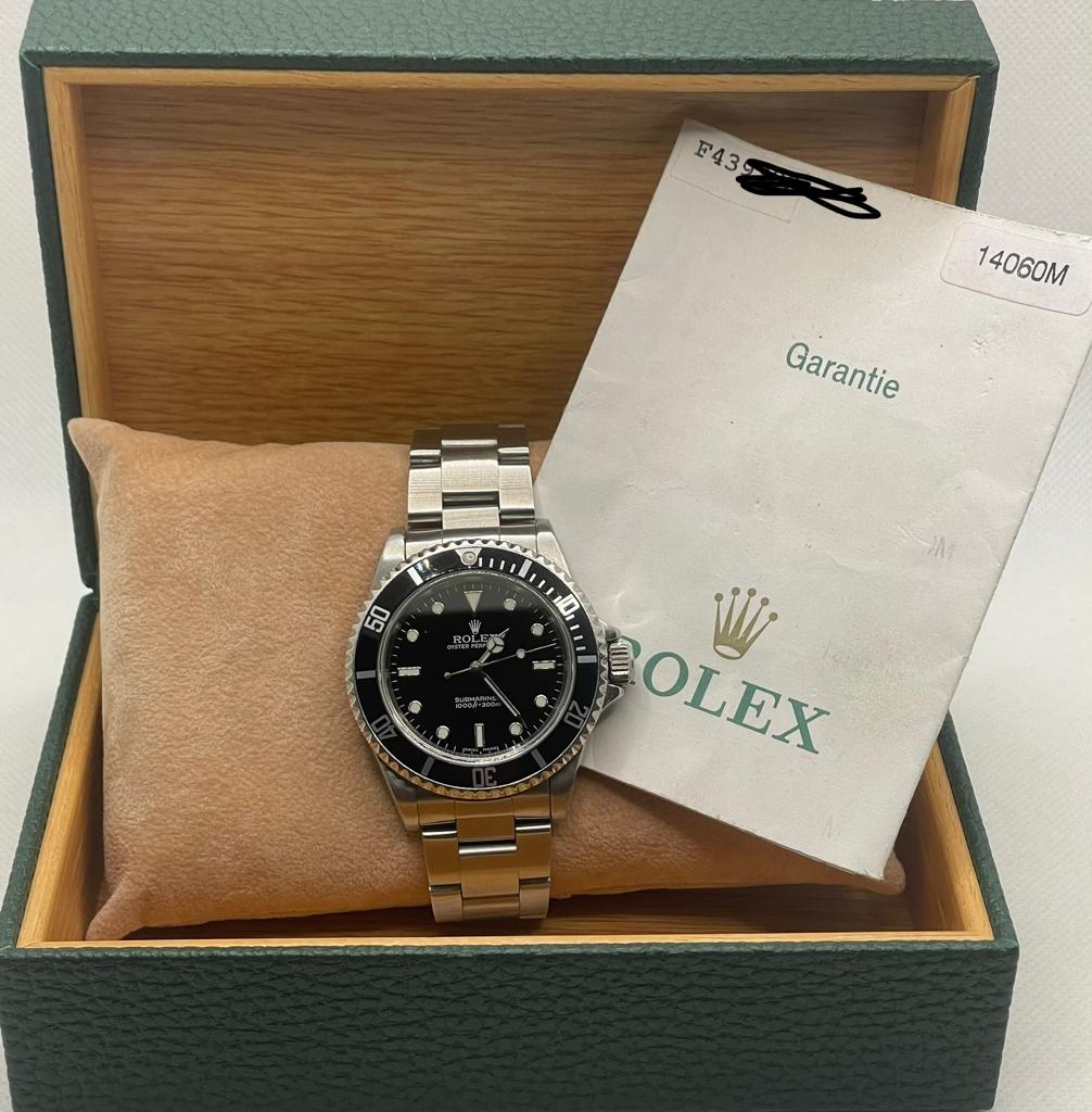 Marca Rolex Modello (Orologio) Submariner Numero di referenza 14060 Carica Automatico Materiale della cassa Acciaio Materiale cinturino Acciaio Anno di produzione 2004 GARANZIA ITALIANA Condizione Ottimo Corredo Con documenti originali Calibro Carica Automatico Cassa Materiale della cassa Acciaio Diametro 40 mm Impermeabile 30 ATM Materiale lunetta Acciaio Vetro Vetro zaffiro Quadrante Nero Numeri sul quadrante Senza numeri Cinturino Materiale cinturino Acciaio Colore cinturino Acciaio Chiusura Déployante Materiale chiusura Acciaio