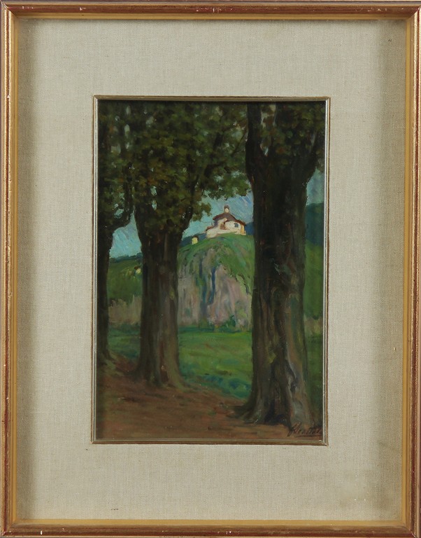 SCATTOLA FERRUCCIO (1873 - 1950) Paesaggio. Olio su tavola. Cm 24,00 x 34,00. Firma in basso a destra,. Cornice presente