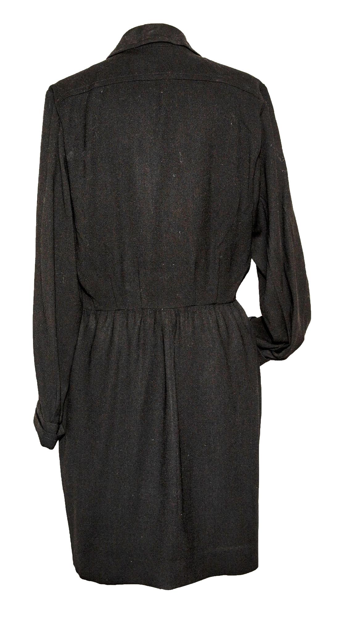 Lined dress, made of 100% wool fabric, with jeweled buttons, shoulder pads. Made in France in the 80s. Size 44. Perfectly preserved.
