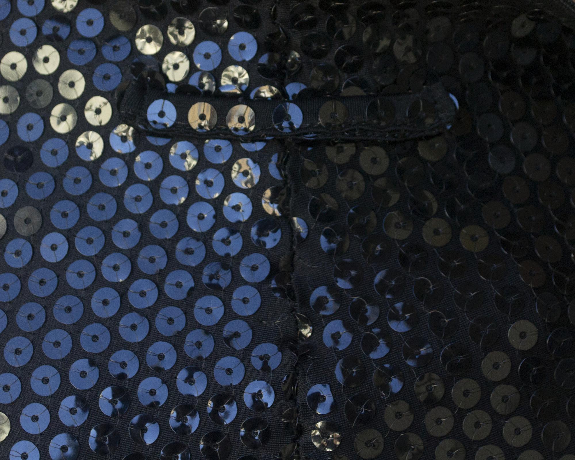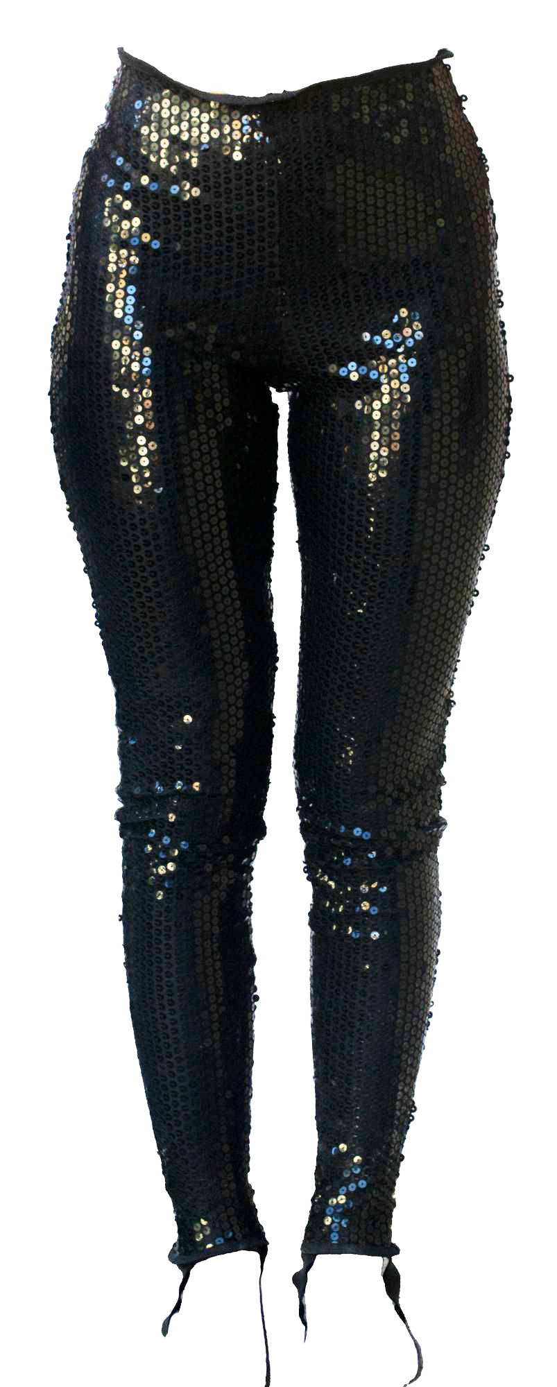 Black leggings in stretch sequins with gaiters and internal buttoning for suspenders. Made in Italy in the 1980s. Size IT 42. Perfectly preserved.