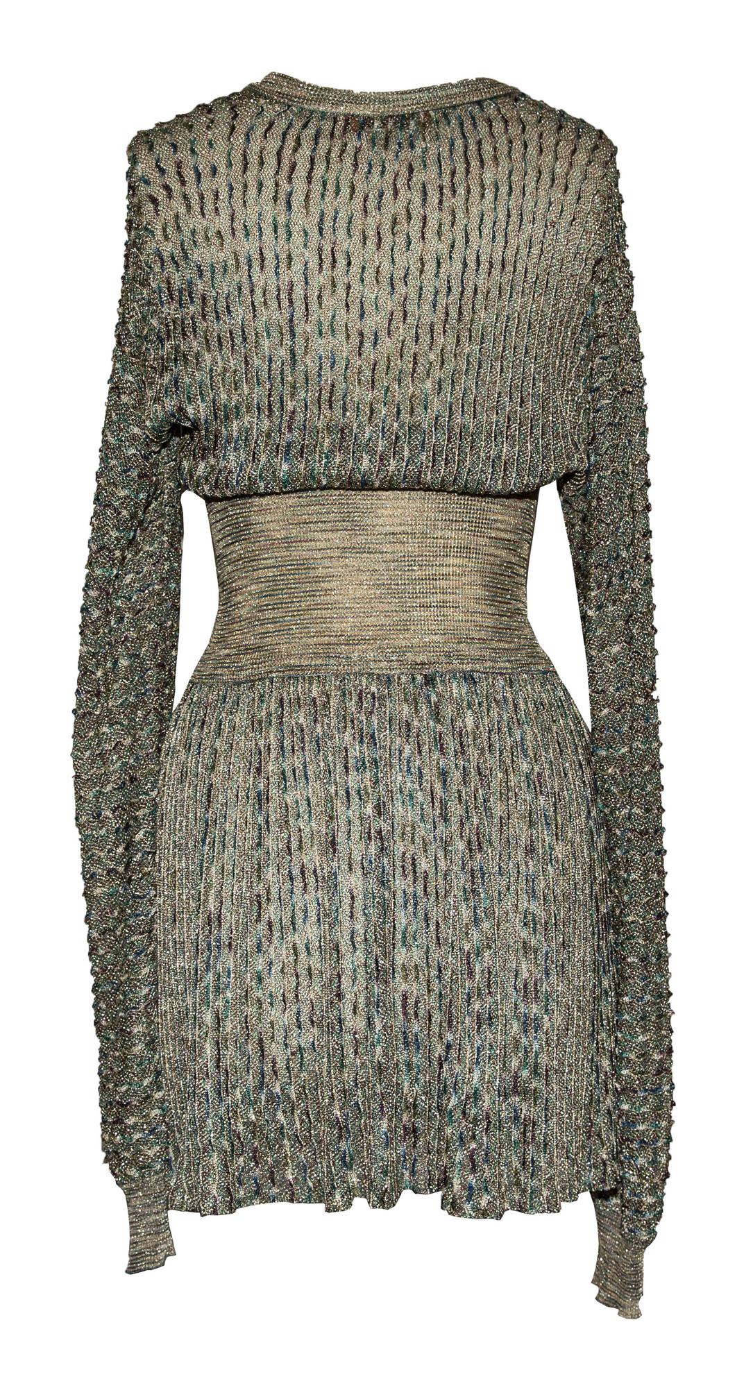 Abito corto in filato multicolore e lurex, taglia S. Made in Italy nel 1973. Perfettamente conservato.