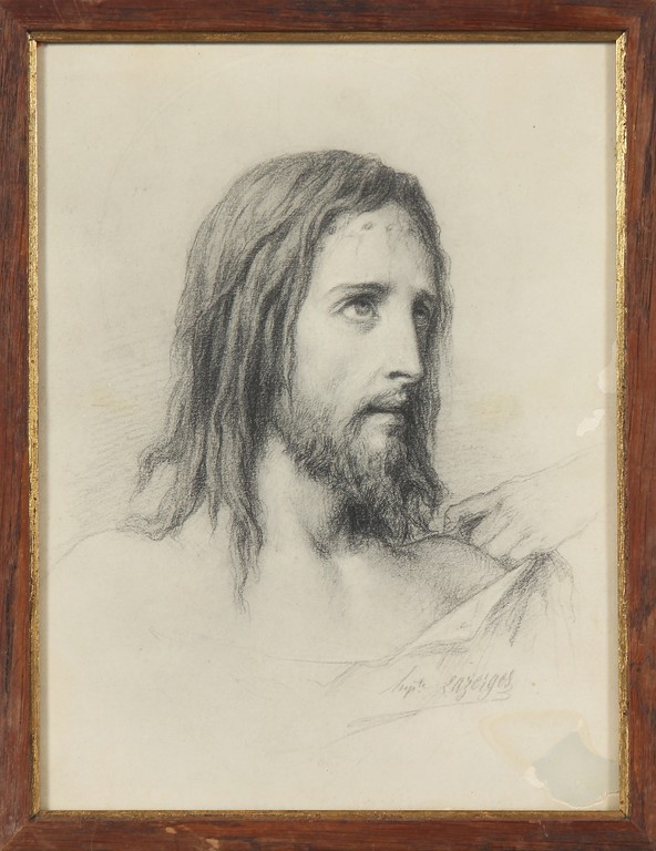 HIPPOLYTE LAZERGES (1817 - 1887) Cristo. Disegno grafite su carta. Cm 21,00 x 27,50. Firma in basso a destra. Cornice presente