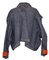 This unlined jacket was made for the Spring Summer 1984 'Hypnos' collection is made in red and green ghingham denim and drapes over the shoulders like a poncho. It features pockets on the shoulders and sides of the garment and closure with rubber penis-shaped buttons on the chest. The sleeves are adorned with bondage orange Velcro straps. One Size. Made in Italy. Perfectly preserved.