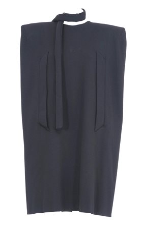 Rare cape dress with oversize structured shoulders from FW 07 collection, two inner pockets at front and buttons closure at back, tubular detachable scarf, fully lined. Size IT 42.