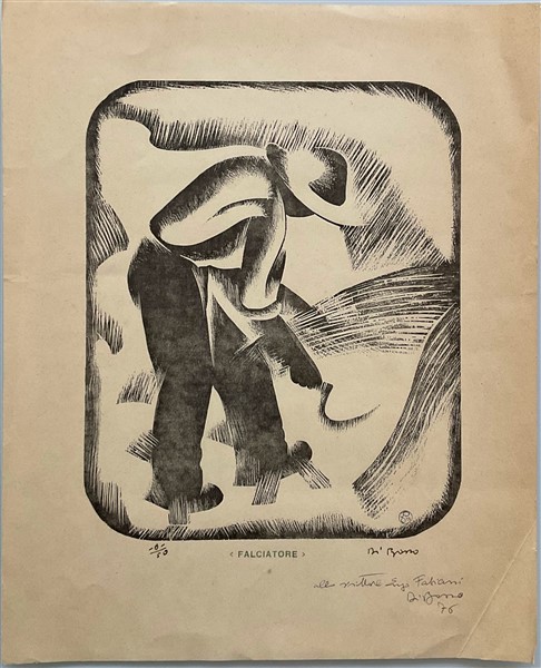 Renato Di Bosso "Falciatore" 1940 xilografia cm 43,5x34,5 monogrammata in lastra