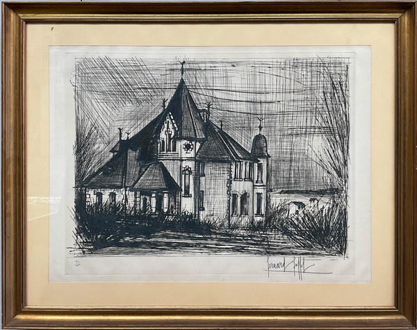 Bernard Buffet "Château de la Vallée" 1965 puntasecca (lastra cm 50,5x65,5; fogl