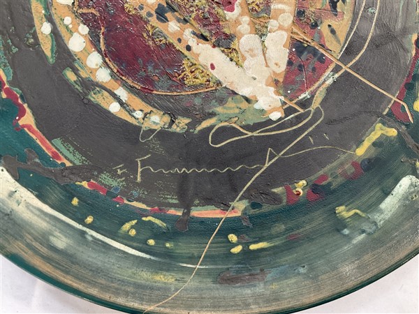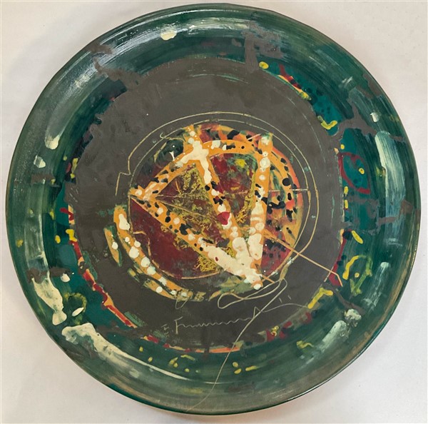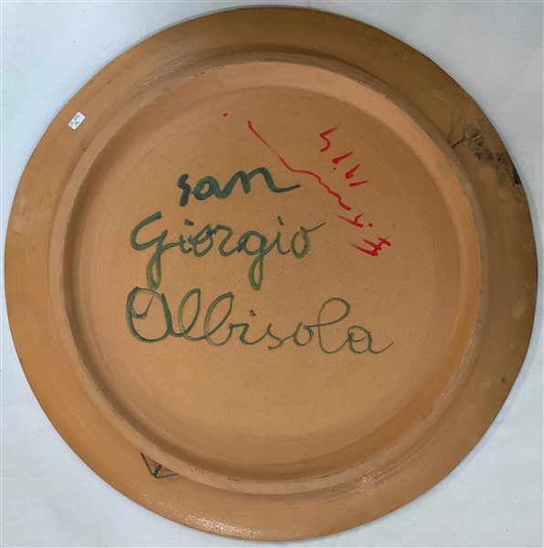 Edoardo Franceschini Piatto in terracotta dipinta, parzialmente smaltata e graff
