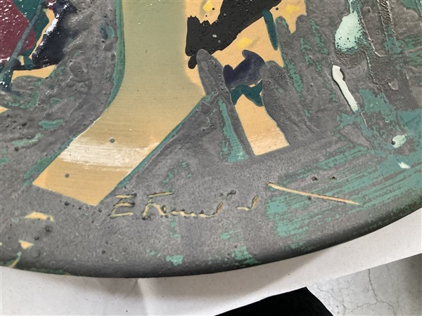 Edoardo Franceschini Piatto in terracotta dipinta e parzialmente smaltata diam,