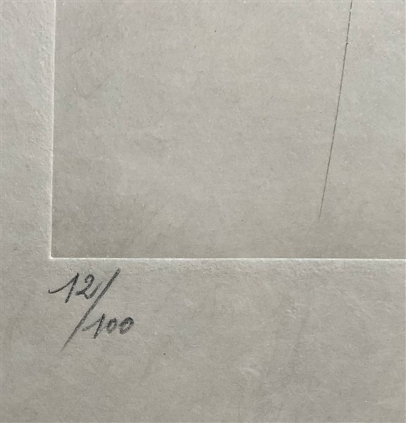 firmata e numerata 12/100 in basso a matita. In cornice (lievi difetti)