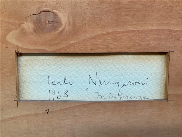 Opera accompagnata da certificato di autenticità su fotografia firmato dall'artista; opera registrata presso l'Archivio Nangeroni, Milano con il numero A-019
