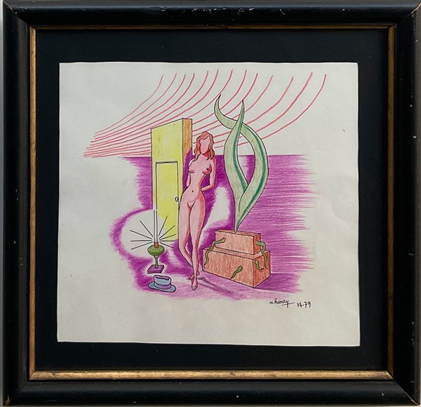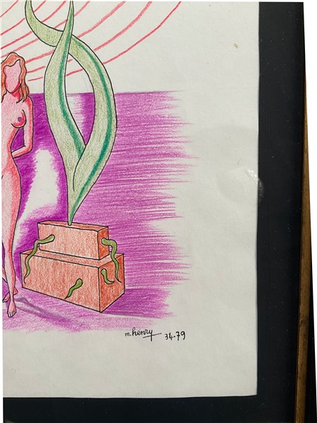 Maurice Henry "Senza titolo" 1979 china e matite colorate su carta cm 24x25 firm