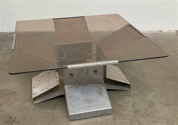 Francois Monnet Tavolo basso. Francia, anni '70. Lastre calandrate d'acciaio, pi