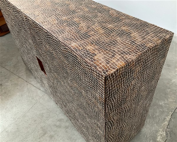 Credenza a due sportelli, struttura in compensato impiallacciato, rivestita in