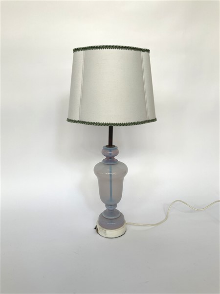 Manifattura di Murano Lampada da tavolo in vetro lattimo con paralume in stoffa