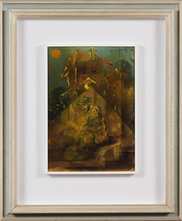 ANONIMO Senza titolo. 1974. Tecnica mista su cartone. Cm 24,00 x 36,00. Firma Ferniga Bs e data in alto a destra. Cornice presente