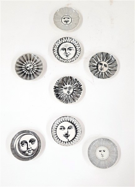 Lot 938 | Piero Fornasetti Otto sottobicchieri. Milano, 1957. Ceramica serigrafata in nero