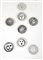 Otto sottobicchieri. Milano, 1957. Ceramica serigrafata in nero. Marcati al verso. in scatola originale. (d cm 8) (lievi difetti)