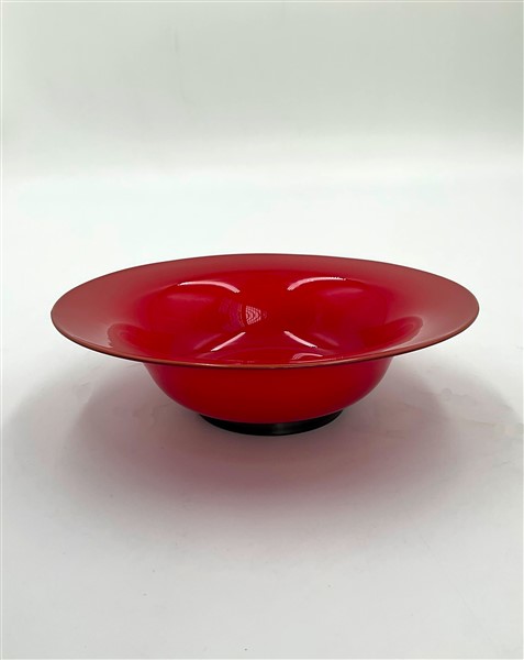 Centrotavola della serie "Opalini". Murano, 1989. Vetro rosso e base applicata nera. Firmato a punta sotto la base "Venini 89". (h cm 5,5; d cm 19)