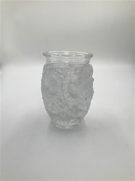 Lalique Vaso in cristallo trasparente incolore parzialmente acidato decorato con