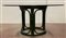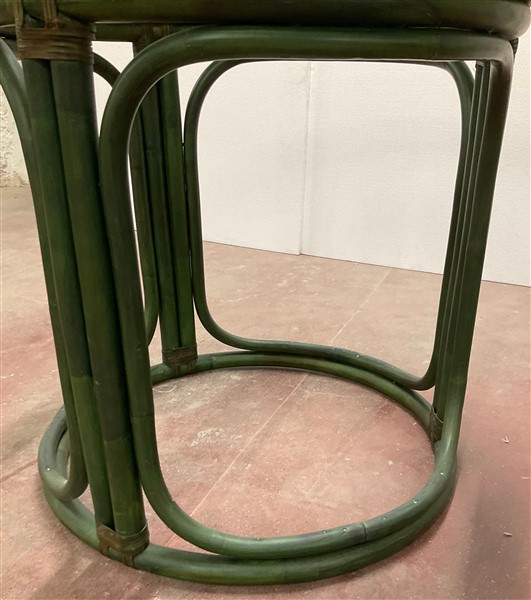 Tavolo tondo in giunco, malacca e scortecciato verniciato verde con piano in ve