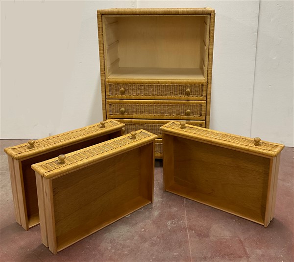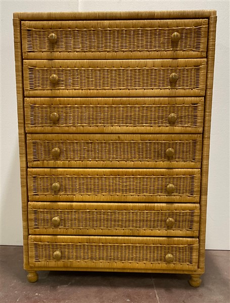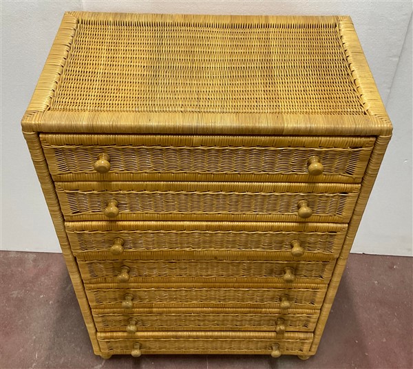 Cassettiera in midollino a sette cassetti. Italia, secolo XX. (cm 74x107x45) (d
