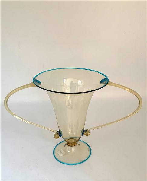 Manifattura di Murano Vaso a coppa biansata in vetro soffiato trasparente ambra