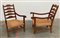 Coppia di poltrone Novecento da camino in legno con schienali a giorno e sedute