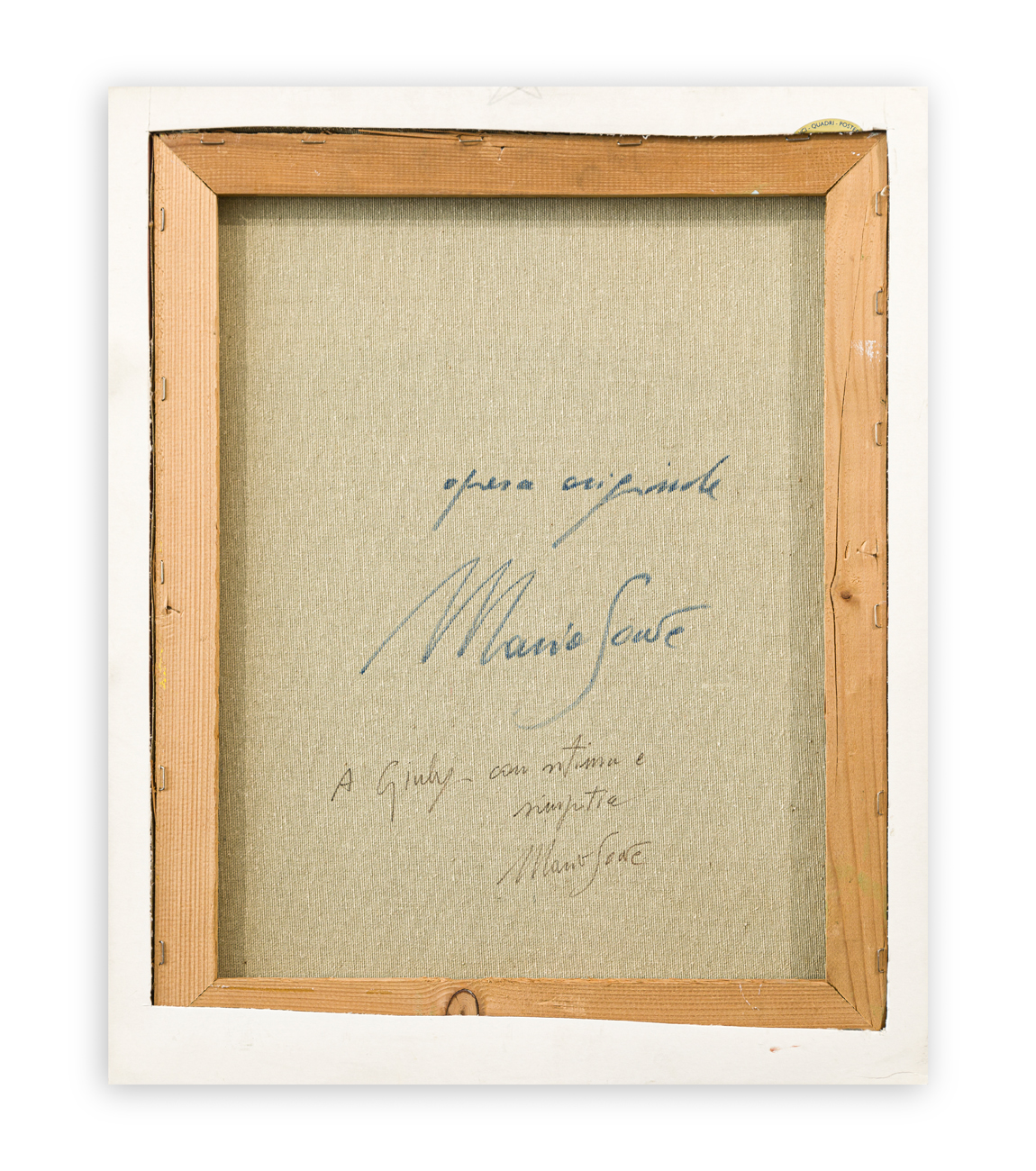 Firma, dichiarazione di autenticità dell'Artista e dedica ad personam al retro