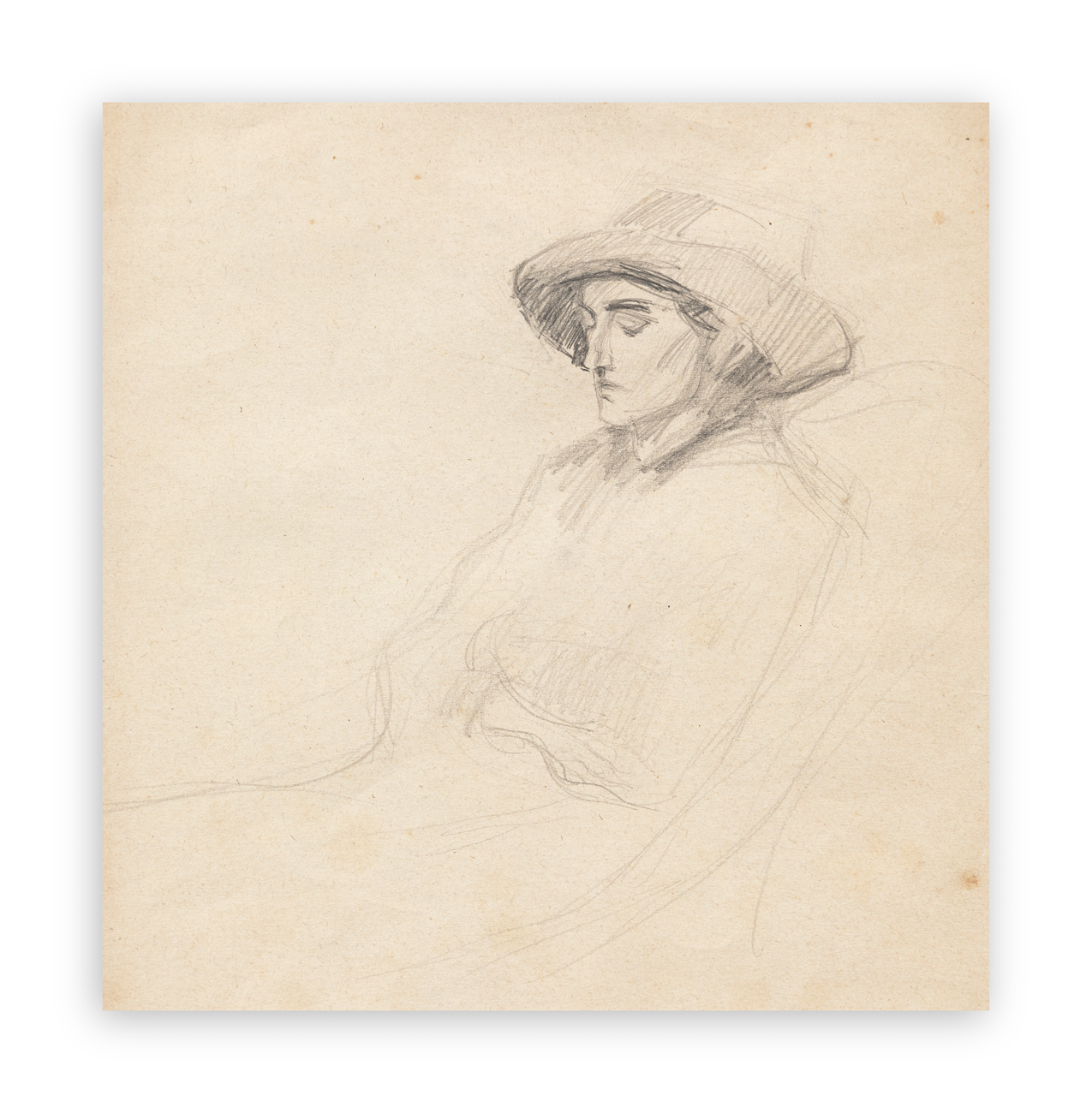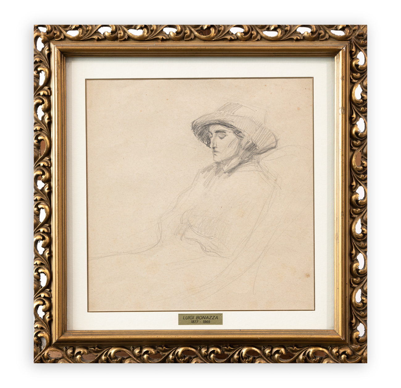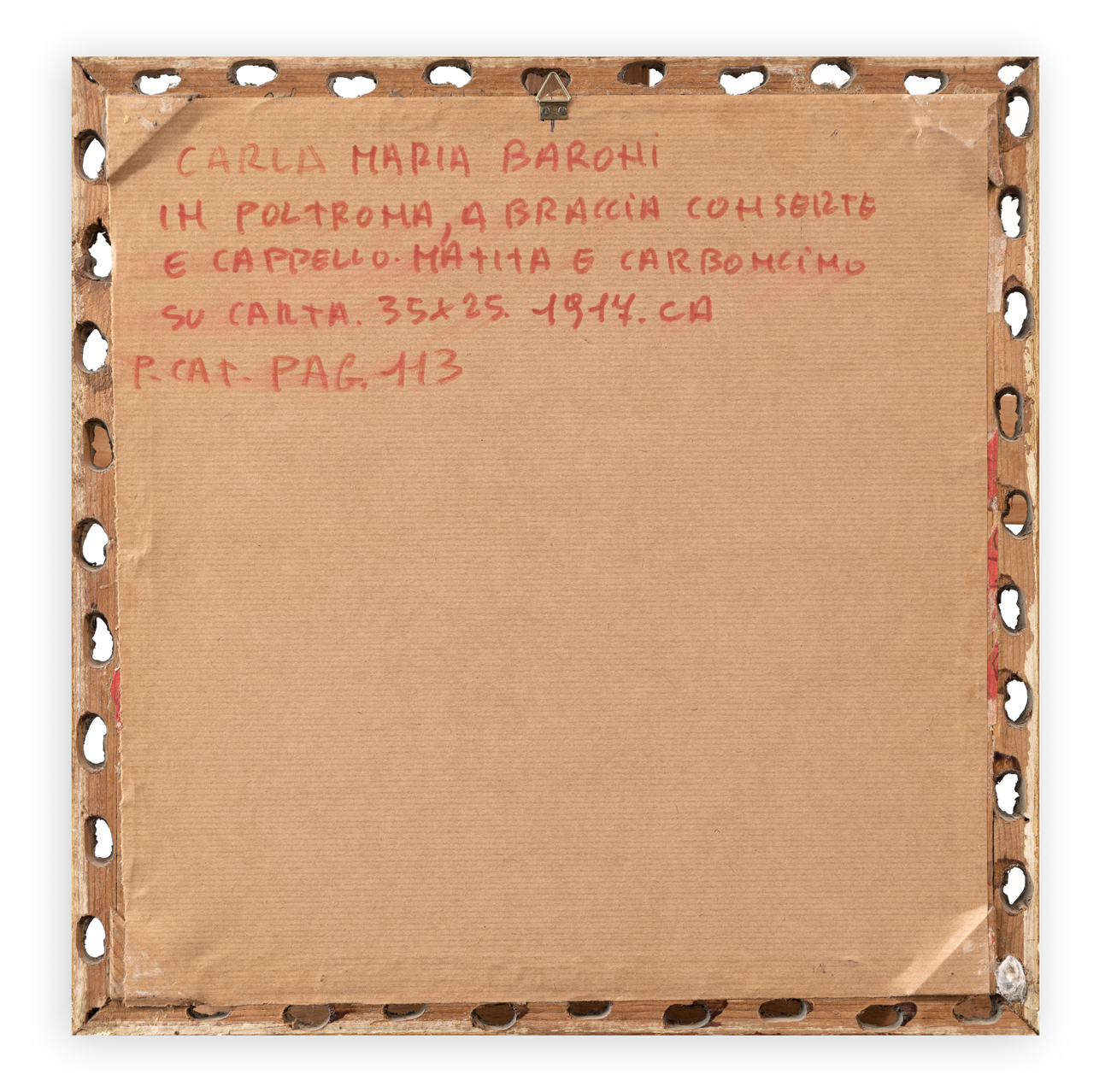 LUIGI BONAZZA (1877-1965) - (Carla Maria Baroni) in poltrona, a braccia conserte e cappello, ca. 1917