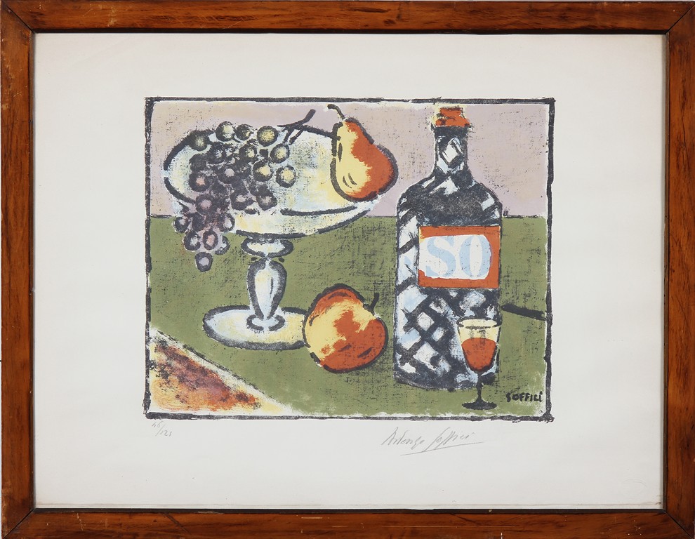 Lot 116 | SOFFICI ARDENGO (1879 - 1964) Bottiglia e fruttiera. Litografia. Cm 65,00 x...